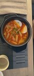 Подача хорошая, с закусками и водичкой, музыка приятная, все комфортно. Приду пробовать другие блюда. Токпокки в сладком сырном соусе. Суп Юккедян умеренно острый, но не жгучий. Чай улун вкусный, хотя я молочный и не люблю. Спасибо за ужин 🙂