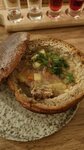 Добрый день. В целом нам вообще повезло попасть в данное заведение, т.к. на праздники во всем историческом Выборге все рестораны, бары и кафе с полной посадкой. Изначально обзвонил ряд заведения на предмет наличия мест и в том числе Хлеб и Мясо и все было занято, а в распиареном ресторане Таверна, вообще очередь на 2,5 часа... не понимаю таких жертв. Ну вернёмся к Хлебу... Проходят мимо решили все же зайти и нам повезло, освободился столик. Основное ромещение с посадкой у них на втором этаже(бедные официанты!). Взяли на первое три гороховый супа в хлебе: суп вполне себе вкусный, но учитывая что хлебный муки вся впитывает, через какое-то время суп превратился в гороховую гущу:). Но суп вкусный... На самом деле все было вкусно и обслуживание неплохое. Можно конечно снять ползвезды за историю блюд в хлебе, но новерно в этом есть какая-то фишка. Ребята старались. Мы остались довольны. И кстати неплохие у них на настойки!