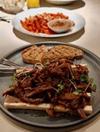 Первое посещение этого ресторана. Весьма неплохо. Были в небольшом зале на первом этаже. Комфортно, приятно, с претензией на некую аристократичность. Обстановка идеальная для спокойного времяпровождения. Обслуживание хорошее не навязчивое. Меню сравнительно небольшое, продуманное, несколько эклектичное. Порции нормального размера (три блюда в расчете на взрослого человека). Подача довольно красивая, аппетитная. Вкус блюд неравноценный. Форшмак без выраженного вкуса. Салат из хрустящих баклажан с томатами - вкусно. Креветки тэмпура сделаны хорошо, хотя кляра можно было бы немного поменьше. Ножка конфи… так себе, особого вкуса не почувствовал. Зато мякоть баранины - великолепно. Морс ягодный - ледяной до такой степени, что вкус ягод не чувствуется, да и вкус мог бы быть понасыщеннее. Водка - качественная. Цены - московские по нынешним временам. В целом вполне благоприятное впечатление. Можно рекомендовать!