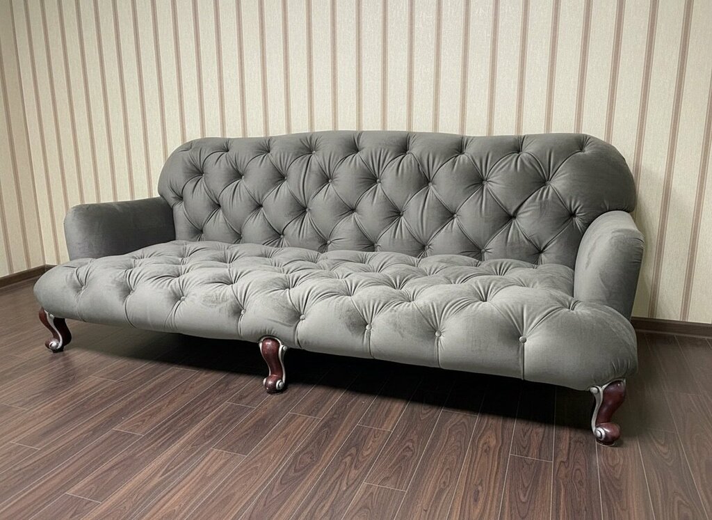 Перетяжка дивана Paris Provasi Home Luxury с заменой наполнителя. Перетяжка гарнитура производилась на производстве «Крафтман», материал под...