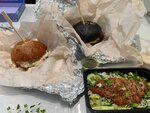 Ordered a few different items for home, and I’m seriously impressed with how well everything traveled. The Smash Burger: Even after the drive home, the edges were still crispy and the meat was juicy. A lot of places lose that "crunch" in transit, but this held up perfectly. The Black Bun Burger: This looked amazing! The black bread stayed soft and didn't get soggy at all. It’s a very cool, unique look and tastes even better. Chicken Nugget Salad: The best "lighter" option. The nuggets stayed crunchy, and the salad was packed fresh so nothing wilted. Everything was packaged securely and arrived hot. This is now my go-to spot for a burger night at home!