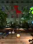 Самый главный плюс для меня - это расположение. Прекрасно ужинать и смотреть из окна на свой дом, в котором ты жил все детство. Официанты очень милый люди, обменялись парочкой шуток, веселые легкие, при этом профессиональные ребята. Еда хороша. Огромного восторга не вызвала, но уверенно вкусно. Брали Маргариту, вителло тоннато - все вкусно. Но хотелось бы побольше порции:) Домашний лимонад не очень впечатлил, бывают интереснее. Интерьер показался современным роскошным кантри, небольшое пространство из двух залов.