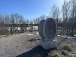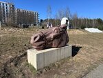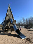 Beautiful park. There is a large parking lot, but you need to arrive early. There is a very interesting swing, a playground with a wooden house and two slides. There are modern stone sculptures on the territory of the park. There is an area where you can have a snack.