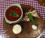 подается со сметаной, зеленью, салом и ржаным тостом