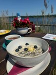 Новое место в Янтарном. Открылось в 2025. На берегу озера, очень красиво, уютно. Были на завтраке, драники, капучино, эспрссо тоник и какое потрясающее спуманте с яблочными нотками! Милейшая девушка за стойкой, спасибо вам! А потом можно тут же покататься на сапах, велосапах (супер вещь!), катамаранах и прочих видах водного транспорта. Езжу в Янтарный очень давно, настоятельно рекомендую!