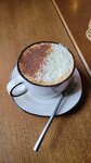 На первый взгляд, все как в обычной кофейне. Сели к окну на диванчик ах, удобно, светло, но... Через пару минут поняли, что нас просто снесёт сквозняк ом из окна, просто очень холодно, сидеть на этих местах, можно только в одежде. Наверно как то можно, хотя бы снизу, утеплить окна. Стол оказался тоже весь в крошка, сразу не убрали наверно, но когда мы зашли, он был свободный, как и большинство других. Молодой человек, который к нам подошёл, стал при нас протирать стол, это было забавно, потому что это было, ни так, что бы собрать все со стола, а раскидывалось все по сторонам тряпкой и эти крошки просто летели на пол и нам на одежду)) Наверно парня надо научить как это делается. Ну а кофе, кофе вкусный. Дизайн чашек, не по мне, но это моё мнение, мне они напоминают непомытую посуду, но видимо такая задумка. Звезду сняла, за ветер в окне и не обученного персонала.