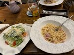 Вкусное место! Порции большие, подача красивая, обслуживание быстрое. Пробовали суп сырный в хлебе - точно стоит заказать! Салат с грушей и горгонзолой, карбонару, свиные ребра, хинкали - все вкусно! Рекомендую к посещению!