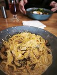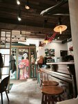 Очень милое кафе в центре Смоленска, но на не самой оживленной улице. Машину можно найти где поставить, а вот место, возможно, придется подождать - столиков немного, а желающих больше. Снаружи очень мило и обещает интересно и уютно. Так и есть. Очень аутентичное пространство с красивой и добротной мебелью, простым, но изысканным дизайном, уютными уголками и максимальным использованием пространства. Ведущий цвет ключевых тканевых акцентов от обивки стульев до формы официантов - зелёного мха. Приятно. Меню хорошее. Подача тоже. Исполнение почти всегда вкусное. Почти: солянка была выше всяких похвал, борщ был как борщ, драники приехали в пережаре и в компании сомнительной и очень сильно красной рыбы, а паста с курицей и грибами чуть в пересоле, но с недостатком сливочности и соуса и его же тимьянности. В итоге, проведенным временем и обедом остались довольны, но не все из нас. Возможно, просто не во всем повезло.