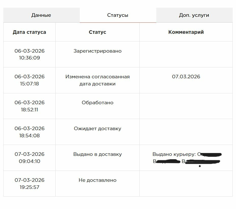 Должны были забрать технику сегодня 17 января, чтобы отвезти в сервисный центр. Не приехали и даже не позвонили. Дополняю отзыв. Сегодня, 1 февраля, должны были привезти технику. Опять не приедут. Но хоть позвонили. Вообще странная курьерская компания, которая работает только до 18:00.