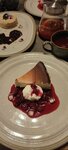Воздушная меренга со сливочным кремом, соусом из манго и маракуйи и шариком ванильного мороженого.