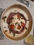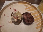 The place is very cozy and overall beautiful, nicely decorated for Christmas. The staff is polite. Unfortunately not all positions from the menu were avaliable (visited on Sunday evening). Tartar is not bad, but not spiced enough, not enought pickles/capers on side or sauce. Also it served with a croissant, which in my opinion is not the best choice for tartar. The meat itself is really good tho. Vitello tonnato is good, a sauce a little bit sicker than a classic one, again not enough pickles (for me), but still really good 👍 Steak mignon is good, the doneness level was exactly what I ordered. Very tasty. Desserts are not worth attention really :)