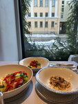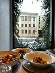 Наконец-то появилось что-то красивое и стильное на Маяковской! Была спустя пару недель после открытия, сначала на завтраке с подругами. То что есть завтрак - это уже огромный плюс! Я брала шакшуку и она была для меня островата. Но в следующий раз обязательно возьму попробовать зеленую шакшуку. Также брали кашу и она была божественная. Но! Отдельно хочу восхититься кофе!!! Сейчас такая редкость выпить вкусного кофе, а здесь пазл сложился. Насыщенный, крепкий кофе 🔥 На следующий день я пришла на обед и осталась опять в восторге. Несмотря на то, что была полная посадка , нам нашли столик. Но все же в этом заведении точно надо заранее бронировать. На этот раз мой выбор пал на кебаб и это лучший кебаб в моей жизни! Очень рекомендую!!! Попробовали шоколадный десерт и тоже остались довольны. Не сладкий, то что нужно к кофе . Обязательно вернусь еще и не раз!