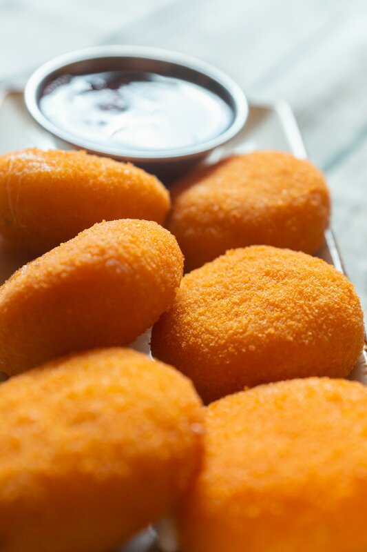 Сыр Сулугуни жареный / Fried Suluguni Cheese with Sesame. Served with Sauce