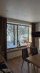 Снимали домик «Барн» на одну ночь после снегопадов. Дорога от поворота (около свалки ТБО) — это 9 км по лесной дороге, занесенной снегом, одна колея. Было волнительно, но результат того стоил! По дороге знаки "Юркинский мыс", на въезде шлагбаум и надпись (неожиданно) "Точка Немо", далее по указателям налево В домике есть абсолютно всё необходимое для комфортного проживания: просторная кухня-гостиная с варочной панелью и большой угловой диван, две уютные спальни на втором этаже с прекрасными видами, душевая. Несмотря на мороз, внутри очень тепло благодаря теплым полам. Особый восторг — частный горячий чан на улице. В такую погоду это было невероятно! Небольшие минусы, которые не испортили впечатления: · Шторы на первом этаже не закрывались до конца (возможно, сбой в автоматике). · Голосовой помощник «Алиса» не управляла устройствами, только на музыку соглашалась. · Хотели развести костер, но дрова оказались сырыми и плохо разгорались · В коридоре на первом этаже чувствуется, что не хватает какой-то мелочи вроде пуфика или консоли. Территория очень атмосферная: деревянные тропинки, качели, а вечером красивая подсветка гирляндами на деревьях и домиках. Итог: Впечатления остались положительные, отдохнули отлично! Очень хотим вернуться сюда летом, чтобы увидеть место в другом сезоне.