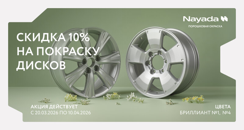 Весенняя скидка на покраску дисков До 10 апреля 2026 года дарим скидку 10% на покраску дисков любого типа и диаметра в цвета «Бриллиант №1»...