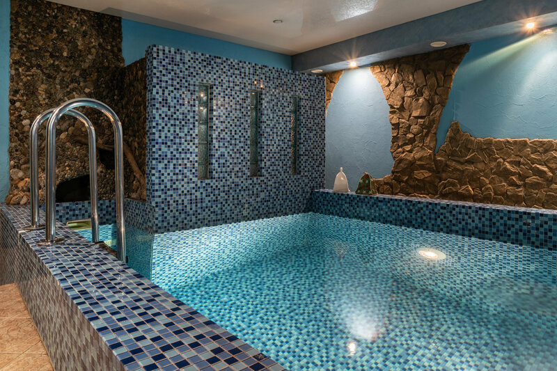 Русская баня. До 4 гостей (до 6 чел с доплатой). Бассейн 1,5×1,5 м, глубина 160 см. Оснащение: зона отдыха; комната отдыха; караоке; ТВ с интернетом; стереосистема и светомузыка; душ; санузел; фен, сейф; теплые полы. Минимальное бронирование – 2 ч.
