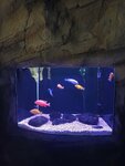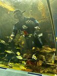 Людей много, но девочки быстро обслуживают. Далее гардероб - находится в другом конце первого этажа от касс. Получать одежду надо отстоять так же очередь. Аквариумы чистые, свет приглушённый. Ожидала бОльшего от туннеля, где вы внутри, а рыбы вокруг вас, стекло как пластик, фокус плохой. Очень понравились земноводные. Везде поясняющие таблички, кто , где живут и т.д.