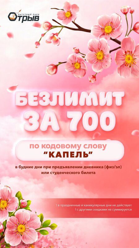 С 28 марта по 5 апреля будут действовать цены выходного дня! 💜 💧«КАПЕЛЬ» и другие акции не действуют До встречи в Отрыве!😍
