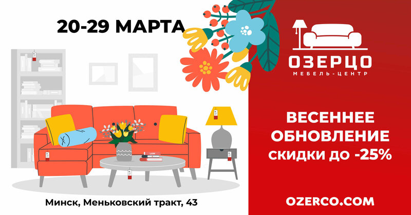 Весеннее обновление в мебельном центре Озерцо. Лучшие цены и скидки, только у нас. Большой выбор мебели в Минске. Приезжай, смотри и покупай...