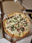 Заказывала пиццу. На вид аппетитная, а вкус подвёл :( Практически нет начинки мясной, ровно по одному тонком кусочку ветчины на разрез пиццы, грибов однако достаточно. Тесто сухое, слегка пережарено. Другая пицца с барбекю и ананасом тоже не впечатлила совсем. В плюсы можно отнести своевременную доставку.