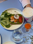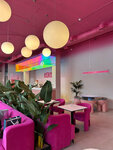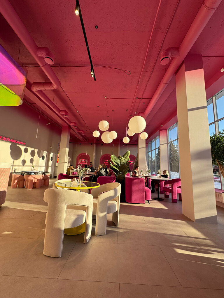 Замечательное место, заходили с подругами на завтрак - в восторге от розового зала, все новое, красивое и эстетичное 💕 Сотрудники вежливые, клиентоориентированные, предложили несколько вариантов столиков, рассказали о концепции заведения По меню и бару - все хорошо! Заказали настойки антиоксидант, чай и кофе, оладьи из кабачка, вафлю с креветками и пиццу пепперони безглютеновую Отдельный плюс за креативность и описание блюд в меню 🔥 Атмосфера легкая, много света, цвета, больше все-таки для девушек и завтраков, нужно будет попробовать еще основное меню и в вечернее время