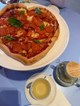 Пришли на завтрак с подругами: на входе не встречают, с барной стойки кричат, что вещи можно повесить в шкаф — ок) Элементы интерьера прикольные в отдельности, но вместе не создают ощущение законченного продуманного интерьера. Например, возле окна стоит елка и закрывает свет, а столики стоят близко к двери кухни. Понравилась мебель! У нас был классный стол шикарного цвета, стол не шатается и очень приятный наощупь. Ждали панкейки и кофе минут 40 при заполненности зала меньше половины. Из пожеланий озвучили, чтобы кофе и блюдо подали вместе, но кофе принесли на 20 мин раньше. Потом переделали по своей инициативе — за это спасибо. Панкейки с розовым соусом оказались жирными оладьями, то есть совершенно другим блюдом. Панкейки должны быть пышными и приготовленными всухую, чтобы за счет бисквитной текстуры впитать соус, здесь же — все отдельно и прям невкусно. На фото видно, что «украшает» панкейки размороженная уставшая мята. Заказывали это блюдо вдвоем, обе порции оставили на столе: оладьи жирные и невкусные, соус кислый, подача сомнительная. Рисовая каша с семенами чиа — хорошая вкусная рисовая каша, но семена чиа подаются сухими в отдельной чашечке, что показалось странным, тк обычно их замачивают по приготовлении. Не понравилось прям ничего, давно такого не было. Из всего завтрака отличным был только флэт уайт. Очень хочется, чтобы меню пофиксили, чтобы столики поставили ближе к окну. Место может быть очень приятным, но пока его нельзя посоветовать.