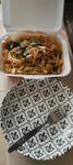 Вкусно, приятные цены и очень щедрые порции) Само по себе место чистое, много столиков, не громкая музыка, довольно быстро приносят заказы, но кушать всё-таки комфортнее дома (взять заказ с собой), это не ресторан)) На фото в тарелке только половина блюда, и этого хватило, чтобы наесться. Не догадалась сфоткать сфоткать другое блюдо с рисом, вот там просто фантастическая порция, с трудом скушали с парнем на двоих.