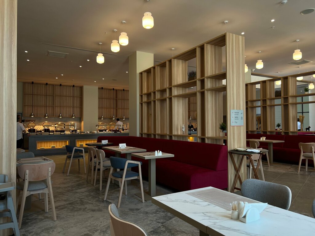 Впервые приехали в этот отель. Приятно удивлены. Прекрасный завтрак включает разнообразное меню. Душевные названия блюд соответствуют их вкусу и качеству. Наличие сезонных овощей и ягод доставят радость любителям здорового питания. Клюква, облепиха, крыжовник без сахара удивительной свежести и аромата. Восхитительный смузи и натуральный йогурт добавляют восторга. Традиционный завтрак в полном объеме. Официанты «скользят» бесшумно и ненавязчиво. Приятная атмосфера, музыка, продуманный интерьер. За огромными окнами открывается великолепный вид на реку. Несмотря на пасмурный и дождливый день отель с успехом добавит радости и настроения релакса.