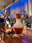 Зашли почти случайно, не зная концепции, поэтому сперва не поняли место — тесно, не протолкнуться, пришлось ждать, пока освободится место за баром или столик. Скоротать ожидание бармен предложил за коктейлем на основе наших предпочтений. Пока ждали коктейли, ожидание в очереди плавно перестало быть таковым, вайб такой, что мы уже на тусовке и неважно, за столиком или стоя. Я заказывала коктейли с персиком и яблоком — вкус превзошел ожидания. Мой спутник заказал коктейль с вишней и ржаным хлебом, сочетание — полный изврат, но бармен смог передать его достаточно достоверно. Есть фирменный коктейль «Кровавая Мери» с дымком. Коктейли огонь, атмосфера тоже. Будем рады вернуться