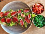 Освежающий салат с тунцом в Busan — идеальный выбор для легкого обеда 😍 Сочные кусочки тунца сочетаются с хрустящими листьями салата, свеж...
