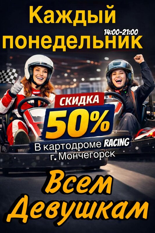 Каждый понедельник всем девушкам скидка 50%!