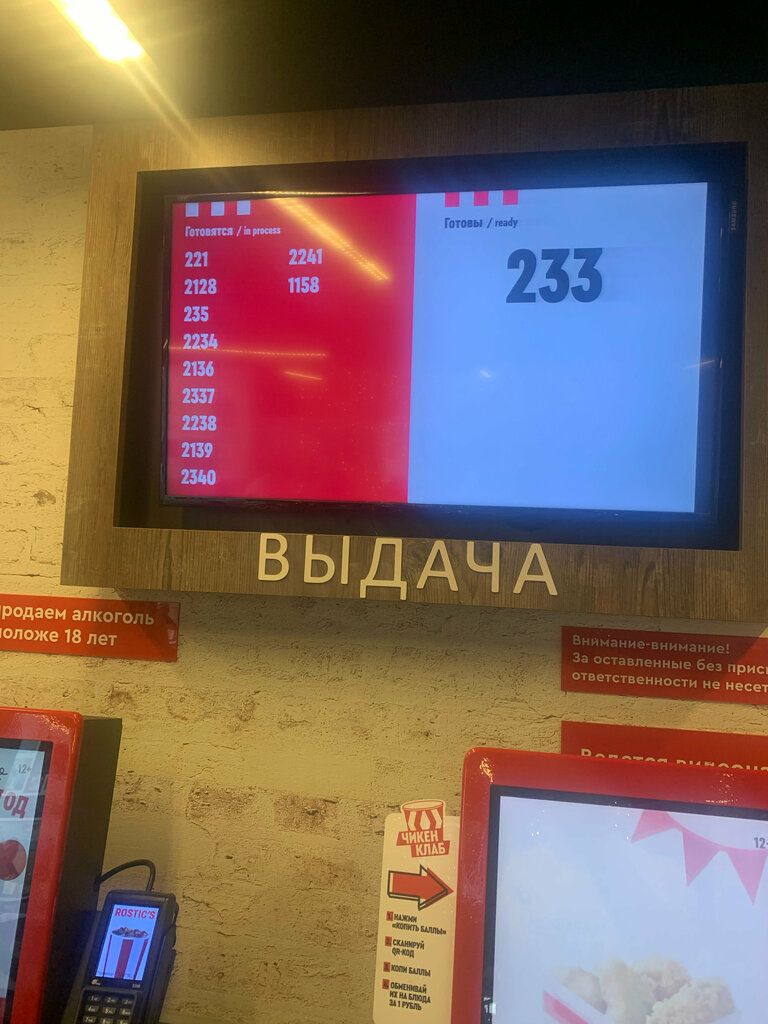Долго готовят, яндекс доставка в приоритете, даже если позже было заказано, собирают еще дольше. Сама еда как и во всех ростиксах, в зале чисто,электронные стойки заказов работают быстро и без нареканий