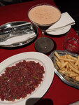 Готовят быстро и вкусно. Персонал чуткий, отзывчивый, по меню все рассказали. Классная затея с гардеробом. Интерьер - оригинальный, пойдём туда снова. Заказывал стейк, на гарнир картофель фри и зелень. Игра вкусов выражена отлично.