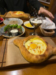 Остались под огромным впечатлением от вечера в этом ресторане! Это тот редкий случай, когда все составляющие идеальны. Атмосфера: Очень уютно, красиво и аутентично. Приглушенный свет, добротная деревянная мебель, приятная грузинская музыка на фоне — создается полное ощущение, что ты в гостях в Тбилиси. Еда: Это главная причина, по которой мы будем возвращаться снова и снова. · Хачапури по-аджарски: Идеально пропеченное тесто, невероятно вкусный и тягучий сыр и тот самый яичный желток, который нужно аккуратно перемешать. Восторг! · Хинкали: Настоящие, сочные, с ароматным бульоном и идеально слепленные. Ели и с мясом, и с картошкой — оба варианты бесподобны. · Сациви: Нежный, бархатный соус, тающая во рту курочка. Пряности подобраны идеально. Обслуживание: Персонал очень внимательный, вежливый и компетентный. Помогли с выбором блюд, подробно все рассказали. Отдельное спасибо за гостеприимство и небольшой комплимент от заведения в конце ужина! Очень приятная мелочь. Однозначно рекомендуем всем ценителям настоящей грузинской кухни!