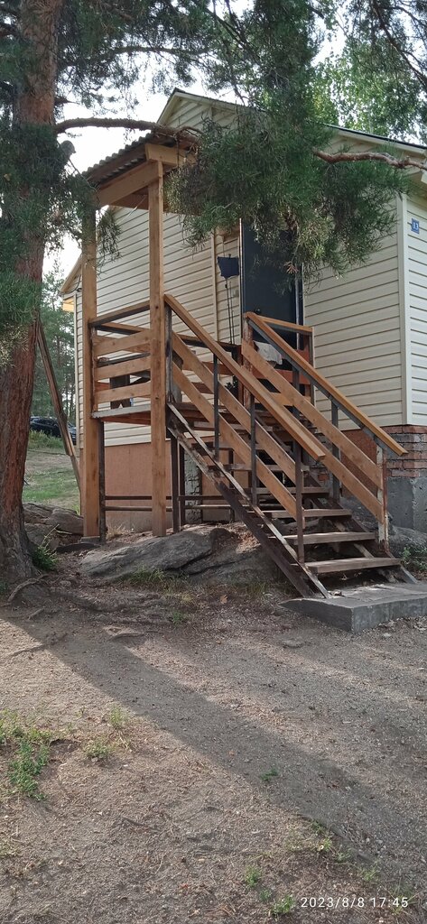 Childhood recreation center. I would like to thank Andrey, he has a good sauna. He is a friendly man himself and is ready to help vacationers at his base. I recommend everyone to relax on this boat, you won't regret it. Prices are acceptable, located in the forest. Of the disadvantages, there is a faucet on the street, a shared toilet. On the plus side: you can order a sauna, a shop nearby, a beach nearby, and it's very quiet. If you are bored with society, you can climb the mountain near the cabins and enjoy the view