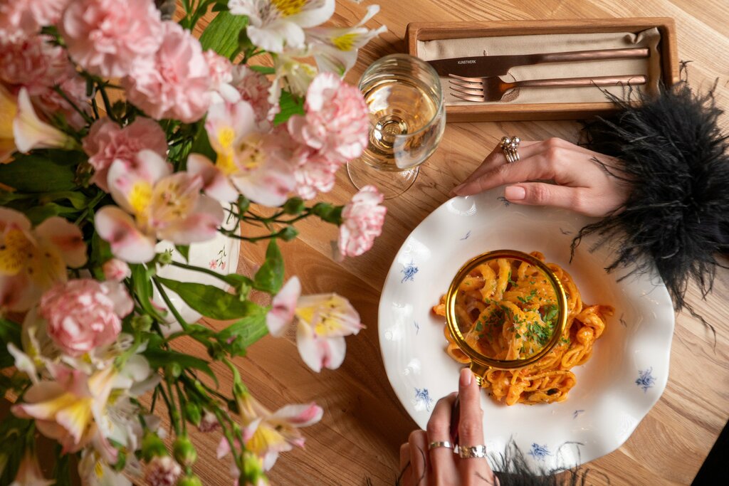 Зашли с мужем в это заведение впервые, были приятно удивлены. Красивый интерьер, много живых растений, вкусный кофе, приветливый персонал, потрясающая кухня, соотношения цена качество на высоте. Мы были с маленьким ребенком и официантка заботливо предложила нам просторное место с диваном среди зелени. Отодвинула стулья чтобы мы могли проехать с коляской и принесла детский стульчик.