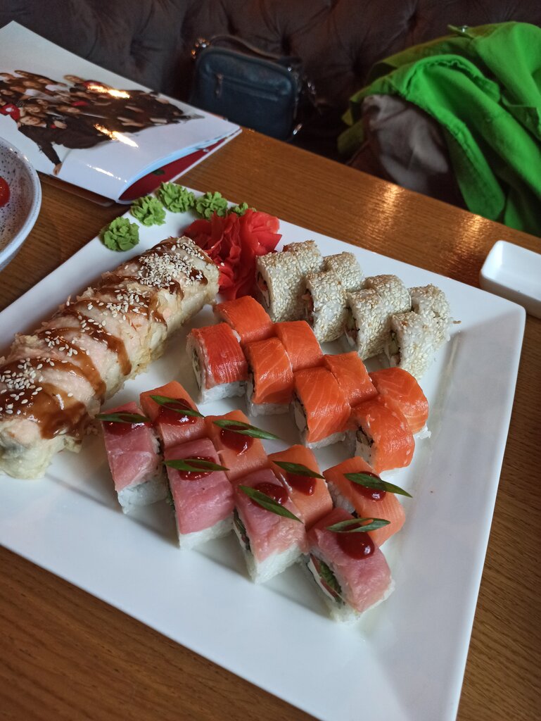 Были в самурае в Дзержинске 15.12, заранее заказали столик по телефону, общались с нами вежливо. Очень уютная атмосфера, чисто и приятно там находиться. Заказывали пиццу, роллы, всё вкусно приготовлено, спасибо повару! Отдельная благодарность официанту Анастасии, отлично справляется со своей работой, добрая девушка. А также хочу отметить Тимофея, помог нам подключиться к бонусной программе, всё подсказал, клиентоориентирован, дружелюбен! Стараются! Спасибо, ребята! Также спасибо за Наполеон, ребенок остался доволен!