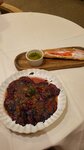 Была с подругой в данном ресторане, очень уютный зал, находиться внутри гостиницы "Северная". Заказала порцию свежего краба (уж очень хотела попробовать), порция небольшая, краб вкусный, к крабу подается соус из чеснока и масла. Карпачо из оленины было также вкусным в соусе с ягодами, все гармонично сочеталось. Заказала суп из бычьих хвостов. Приятный суп, много мяса, чечевицы, сочетается хорошо, сытно. Не жирный, не смотря на данный вид мяса. При выборе мне сказали что он пряный, но это не так, остроты или пряности так называемой не хватило. На десерт заказала брауни (эффектно выглядит). Вишня дополняет шоколадный вкус. Но шоколадное тесто по мне слишком пережарено.