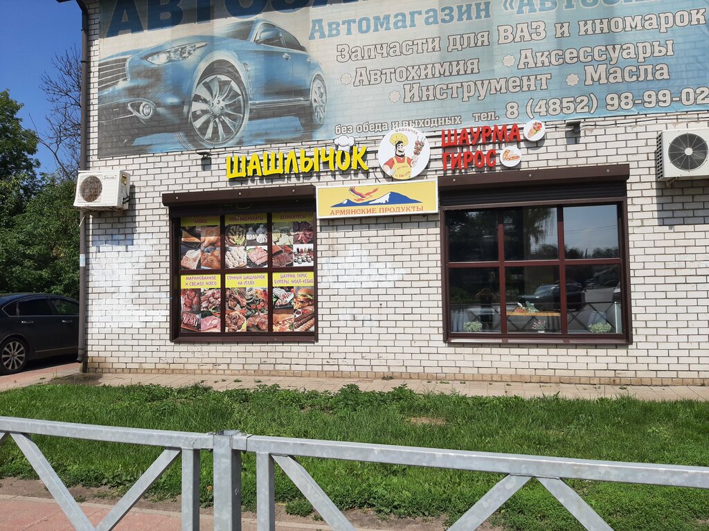 Очень вкусная шаурма, большая и сочная! Большой выбор шашлыка, можно взять на вынос, можно посидеть внутри. Также большой выбор всевозможных приправ и вареньев, молочной продукции, лимонадов, есть вкусное армянское пиво! Персонал вежливый, внутри чисто, быстро готовят. Хорошее место!