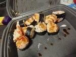 Очень жаль, что в таком состоянии оказались роллы :( Это, пожалуй, единственный минус. Всё очень вкусно, свежее, размер хороший, начинки не жалеют, много бесплатного соевого, имбиря и васаби. Попробуем в следующий раз снова испытать удачу)