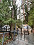 После активного времяпрепровождения в парке можно отдохнуть в уютном семейном кафе с купольными беседками на свежем воздухе( внутри обогрев тепловыми пушками) и детским уголком "Шишки-мишки». Меню обширное, но цены завышены -блюда обычные. Понравилась пицца 35 см свежеприготовленная( тесто тонкое) и из десерта- вафли с мороженым и фруктами с шоколадом. Обслуживание очень гостеприимное, подача недолгая. В рабочие дни меню не полностью реализуют, но в выходные - разнообразие в полной мере))Очень здорово, что есть такое место в этом огромном лесопарке!!!! Спасибо за уют и тепло!!