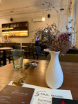 Посетили бистро в пятницу вечером, когда был виниловый вечер. Нас дружелюбно встретили. Мы бронировали столик заранее и нас, как обещали, посадили около окна. Зал бистро небольшой, но уютный и очень атмосферный. Музыка играет не тихо, но в этом месте это не лишнее, а самое то! Персонал очень радушный, будто пришли в гости к друзьям. Очень внимательная официантка Лиза, которая рассказывала нам о каждом блюде и коктейле, который подавала. Это огромный плюс. Ещё хочу отметить, что постоянно подливают воду в стаканы, даже если ещё не успеваешь допить. Мы заказывали сет-мезе с роти, пшено с курицей и салат с лангустинами. Всё очень вкусно, не посредственно. Коктейли тоже очень хорошо делают. Каждый напиток не похож на другой. Музыка от диджея очень понравилось, прониклись прекрасной атмосферой и музыкой. Спасибо за красивый, вайбовый и вкусный вечер! Обязательно придём ещё.