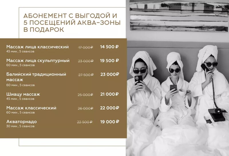 28-29 марта: подарите себе спа-выходные! —> Безлимитное посещение акватермального комплекса — 2 500 ₽ —> Скидка 20% на все виды массажа —> ...
