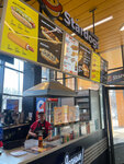 Все очень быстро и совсем не вкусно. Сырные палочки откусываешь как будто жуешь хлеб , потом появляется сыр. Сосиска в лепешке за 349р состоит из 150 гр порошкового картофеля и торчащая из него сосиска с 7 тончайшими дольками огурца. Качество еды ужасное. Продавцы вежливые
