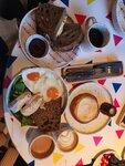 🤡Стартовала, но не финишировала🤡 Брала домашний творог со сметаной с дополнительным топпингом в виде ягод, булку с корицей и кардамоном и фильтр на Кении. Этот набор обошелся мне в почти 1200 рублей (на мой взгляд это много, даже если не конвертировать в килограммы творога/курогруди и комплексные обеды - на эти деньги здесь же на Петроградке можно пообедать свежей пастой с морепродуктами или налупиться рамена с креветками). ❤️Понравилось: ❤️ большой выбор фильтра, 5-6 очень разных вариантов ❤️ булка действительно вкусная, мягкая, сочная и свежая, с мощным кардамоновым вайбом 💔Не понравилось: 😕маленькие порции, топпинг в виде двух клубничин, творог совершенно обычный (ну типа Простоквашино или Домик в деревне в пакете), сметана консистенции и вкуса питьевого йогурта, осталась не очень сытая 😕заказ объявляют по громкоговорителю на фоне музыки, не очень внятно 😕ходишь в зону выдачи за каждой тарелкой отдельно вразнобой 😕ну и мелочи: стаканов для воды, крана или кувшина замечено не было, круассаны на открытой выкладке у кассы, салфеток (в отличие от круассанов) в доступе нет, в 8:30 утра при неполной загрузке кафе столы грязные Короче, совсем не моё место. Может быть, случайно и за компанию я туда еще попаду, но умышленно точно еще раз не приду. Даже за булкой. Апдейт спустя почти год. Открыли сезон интервалов на стадионе, самое время заглянуть в Старт. Завтрак на двоих - 2,5к. Это яичница с курицей, грильчиз, маленький капучино, какао за 500 рублей, ватрушка и канеле. Именно претензии - к канеле, он был недопечен внутри (не вязкий и нежный, а сырой). Все остальное - не жесть какая вкусная, но съедобная база из продуктов из ближайшего супермаркета, уровень хорошей столовки, но не за эти деньги. Воды все еще нет, салфеток тоже, булки от дыхания очереди закрыли, спасибо