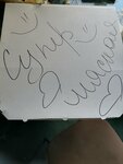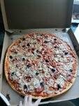 Вкусная огромная пицца, берём не первый раз, тесто пропечённое, начинка свежая, очень приятно, что нарисовали смайлик и сердечко на коробке, которую принёс муж, приурочив её к сегодняшнему дню пиццы 👍😁
