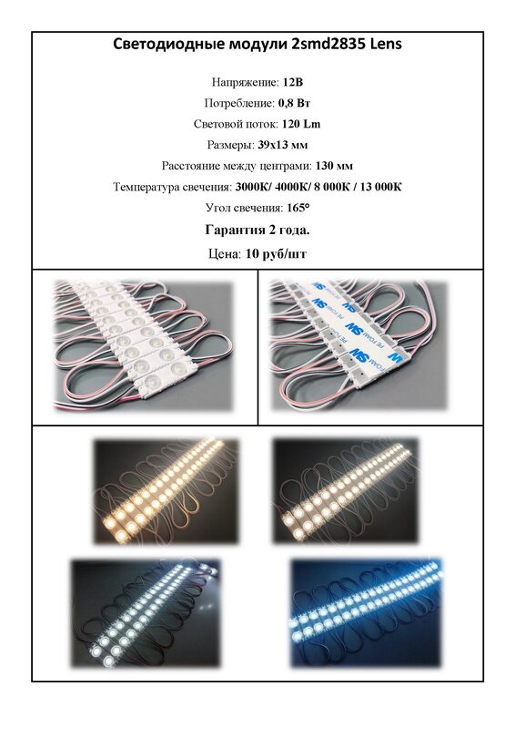 Новое поступление! Светодиодные модули 2smd2835 "Двушки" теперь в 4 вариантах: 3000К, 4000К, 8000К, 13000К ! И все по одной цене, 10 руб/шт!