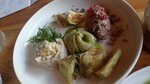 И сразу - нет. Уже на входе были сомнения, но привыкла посещать новые места. Смутили мусорные баки совсем рядом с рестораном. И не зря смутили. На террасе мусорный аромат доносится явственно. Это был первый минус. Разочаровал кофе. Капучино трудно испортить, но слишком большое количество молока просто убило вкус. Цезарь с креветками был объективно хорош, здесь плюсую. А вот карбонара была....не карбонарой. Это были макарошки с салом - по-другому я назвать крупные оковалки сала в шлепке макарон не могу при всем желании. Три звезды ставлю только благодаря милой девочке - администратору, которая, узнав об отказе от блюда, прибежала узнать, что не так, исключила блюдо из счета и предложила десерт в качестве комплимента (который мне так и не принесли в итоге). В общем, второй раз посетить это заведение у меня желания не возникнет, увы.