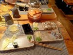 Действительно хочется поставить пять звёзд! И не потому что за этот отзыв мне дадут чай) Здесь немноголюдно, покойная инструментальная музыка без слов, не сильно тихая но при этом не мешает разговору, можно спокойно пукнуть) Моему спутнику понравились роллы дракон, а мне понравились роллы карамельный угорь) Учтивый и тактичный официант Руслан, который учитывает все пожелания и дополняет комфортную атмосферу. Приза козерола в без проблем убрали ингредиенты, которые я не хотела. В зале красивые подсветка, и прикольная Атмосфера за окном. Нет посторонних запахов и шума (скажем от кофемашины) В целом, я действительно взяла телефон чтобы написать хороший отзыв) Сама себе рекомендую это место) Белая туалетная бумага)