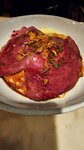 Ресторан понравился. Еда - 5. Я брал на горячее пастрами с картофельным пюре и пармезаном, на десерт - хинкали с манго. Очень вкусно, качественно! Сервис - 5. Очень приятная официантка. Локация - 5 с минусом. Расположение в самом центре. Ехать на машине не надо, не запарковаться. Сам ресторан небольшой, посадка очень плотная. Самые лучшие места - столики у окна. Наверное, надо специально указывать при бронировании, но нам повезло. Бронировать нужно заранее. День в день или накануне не получится. С удовольствием пойду еще!